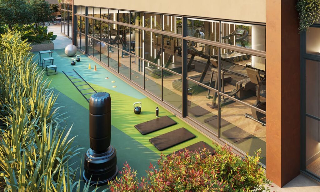 • Espaços fitness interno e externo