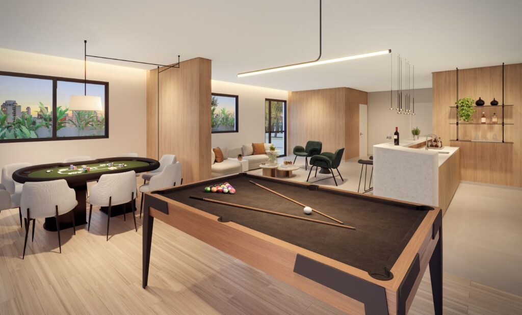 O projeto prevê áreas comuns que promovem convivência, bem-estar e segurança para moradores, elementos cada vez mais valorizados no mercado imobiliário contemporâneo. Espaços pensados para diferentes momentos do dia a dia agregam valor à experiência de morar, elevando a qualidade de vida sem a necessidade de deslocamentos frequentes.